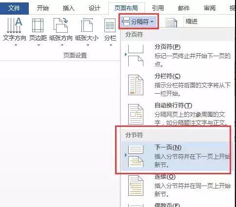 ➤方法:先将光标放在目录的最后,点击菜单栏页面布局——分隔符——分节符——下一页。